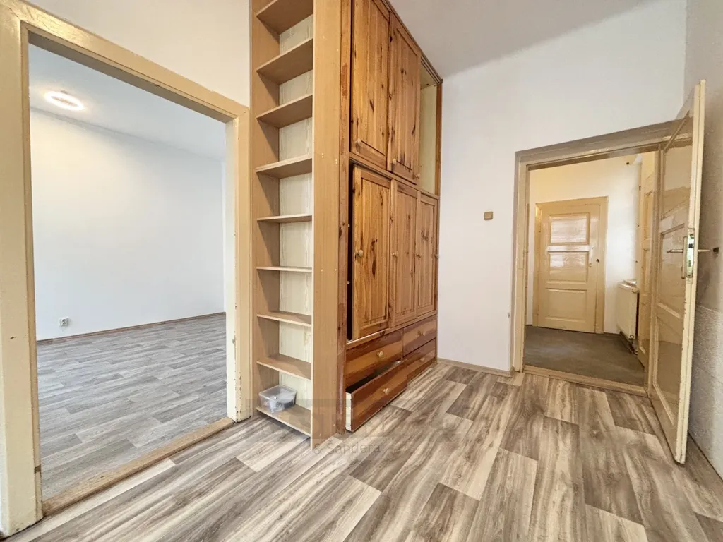 Do bytu vstoupíte stylovými dvojkřídlými dveřmi, které vás zavedou do praktické předsíně s věšákem a dostatkem místa pro botník. Z chodby je přístupná koupelna vybavená prostornou vanou a umyvadlem se zrcadlem, toaleta je pak prakticky umístěna samostatně. Následuje velmi prostorná kuchyň, kde kromě kuchyňského koutu oceníte také dostatek místa pro jídelnu a velké úložné skříně. Kuchyňská linka je vybavena spotřebiči – novým elektrickým sporákem s troubou, myčkou a digestoří – a je zde připraven i prostor pro pračku. Na kuchyň navazuje velkorysý obývací pokoj, který díky své velikosti umožní vytvořit komfortní obytný prostor. Za obývacím pokojem se nachází samostatná, oddělená ložnice. Byt je vytápěn plynovým kotlem a radiátory.