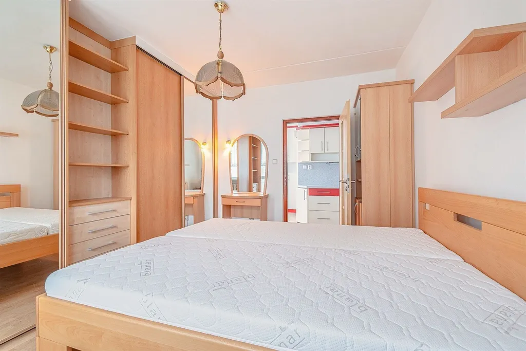 K disdpozici je i vybavení, jako např. v rámci kuchyně lednice s mrazákem, vestavná el. trouba, el. varná deska, digestoř, zařízená ložnice, z větší části zařízený obývací pokoj a třetí pokoj (viz. fotografie). Vytápění a phřev UV je vlastní ústřední plynové kotel na WC. Okna plastová.