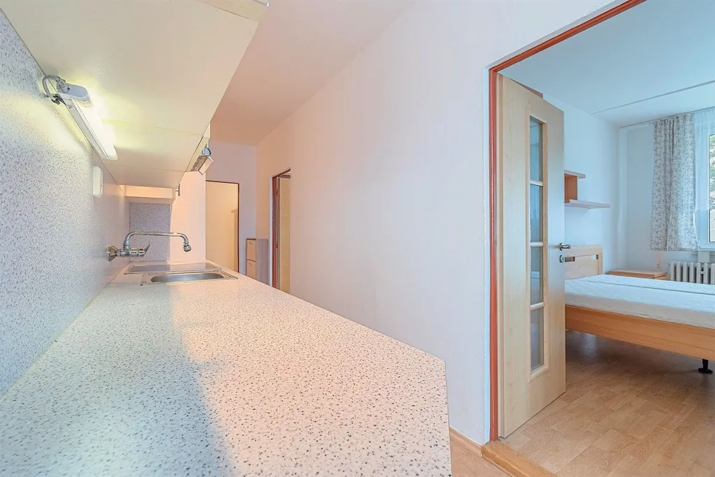 Dispozice: vstup chodba kuchyně s jídelním koutem tři samostatné pokoje koupelna s vanou samostatné WC. K bytu náleží samostatný sklep v suterénu budovy. K bytu náleží sklepní kóje v suterénu budovy. Budova je revitalizovaná, parkování veřejné na okolních parkovacích místech.