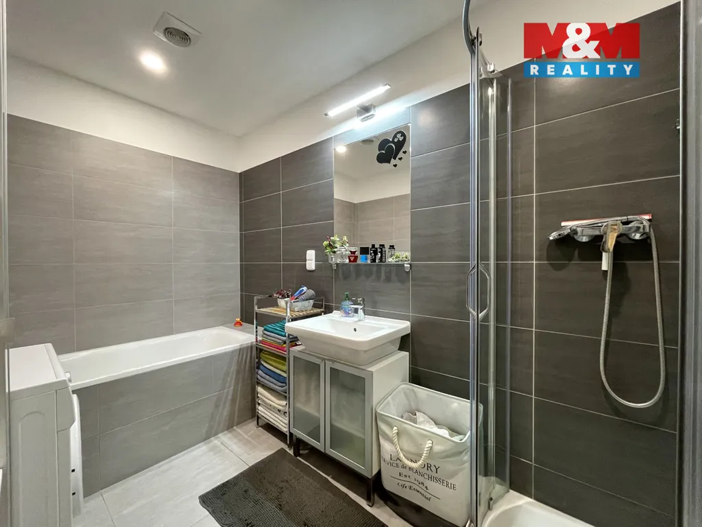 Dominantou bytu je prostorný obývací pokoj propojený s moderní kuchyní. Díky jižní orientaci je hlavní obytná část krásně prosvětlená po celý den. Z obývacího pokoje je vstup na prostornou lodžii s výhledem do zeleně.