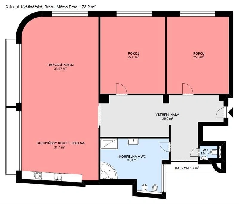 Pronájem bytu 3+kk, Brno, Květinářská, 173 m2