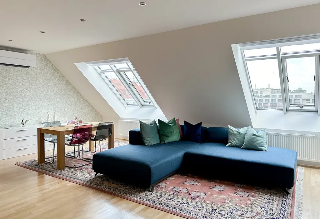 Pronájem krásného a plně vybaveného mezonetu 3+kk v srdci Vinohrad, ulice Boleslavská 7. Tento prostorný mezonet se nachází v 6. patře a má celkovou plochu 114 m².