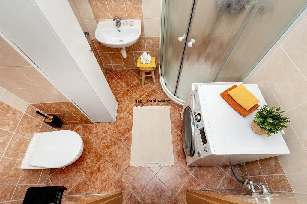 Nabízím k prodeji moderní byt 2+kk o výměře 48,79 m², který se nachází ve zvýšeném přízemí cihlového domu z roku 2011 v žádané části Prahy – Vinoři. Velkým benefitem je soukromá terasa o výměře 14,59 m² a zahrádka 18 m², orientovaná na západ, která není započítána do podlahové plochy bytu.