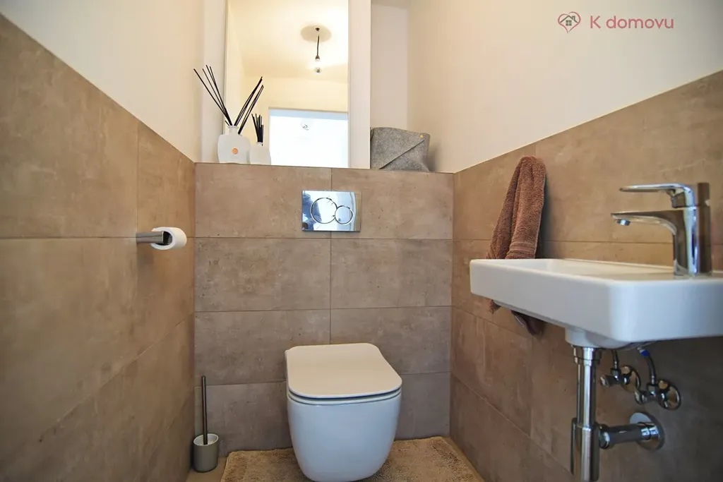 Ve druhém nadzemním podlaží dominuje prostorná ložnice s přístupem na terasu, na které se budete cítit jak v přímořském letovisku. Dále zde naleznete koupelnu, samostatné WC a prostornou komoru.