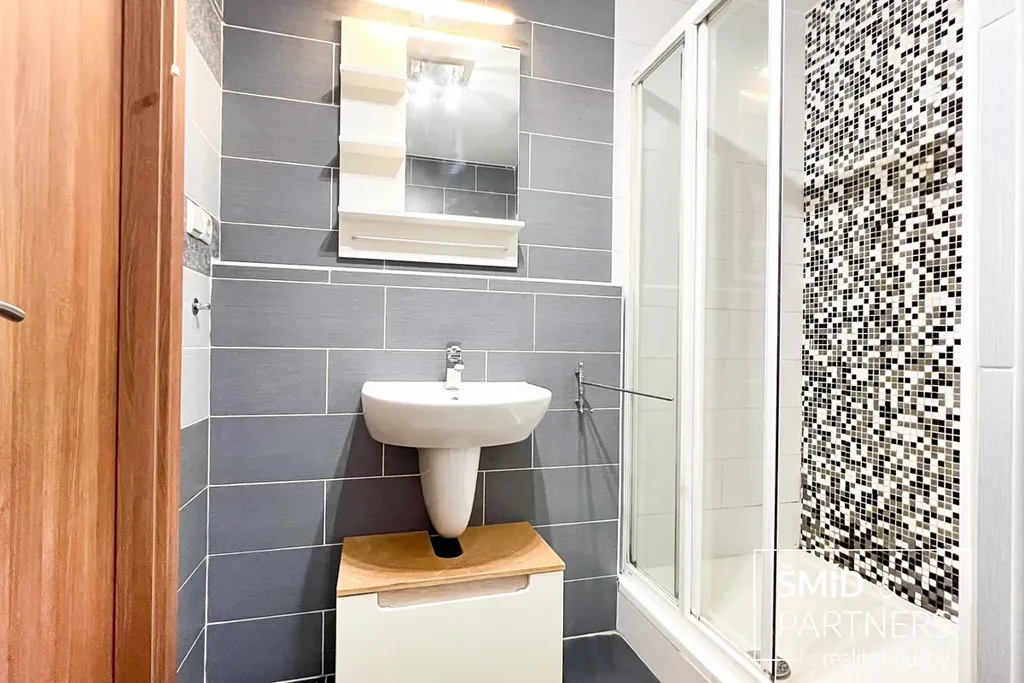 Dispozičně je byt rozdělen na obývací pokoj s kuchyňským koutem a malou ložnici. V obývacím pokoji je zcela nově instalována kuchyňská linka vybavená sklokeramickou deskou, digestoří, myčkou, mikrovlnou troubou, ledničkou a pračkou. Vstupní chodba je dostatečně prostorná na umístění šatní skříně. Koupelna s WC je vybavena pohodlným sprchovým koutem, umyvadlem se zrcadlem.