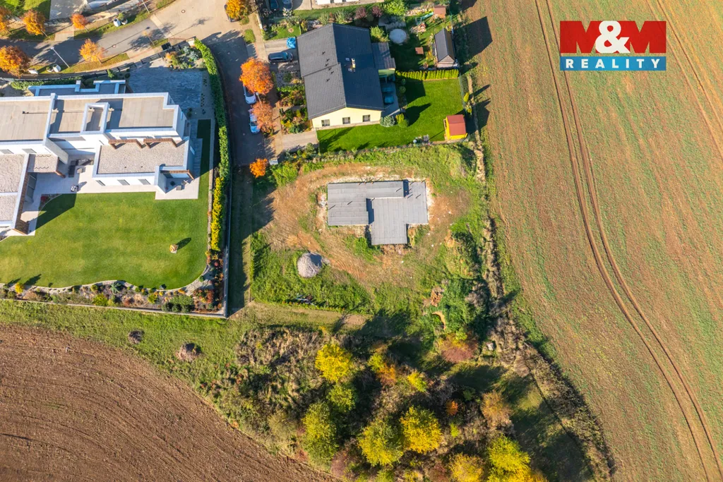 Součástí prodeje je kvalitně vybudovaný betonový základ, kompletní projektová dokumentace elegantního moderního domu v minimalistickém stylu a platné stavební povolení – stavět můžete ihned. Přípojka elektřiny je již zajištěna, voda a kanalizace jsou v dosahu a přístup k pozemku vede po asfaltové cestě.