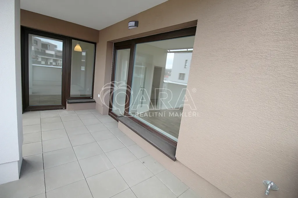 Komfortní byt 3+kk/T,G,S, 78 m2, v 5.NP novostavby s výtahem, obývací pokoj s částečně vybavenou kuchyňskou linkou, 2 ložnice, koupelna s vanou, samostatné wc, prostorná terasa 11 m2, sklep, parkovací stání v podzemní garáži. Nezařízený, možno odkoupit skříň a ložnici od současných nájemců za výhodnou cenu. Komfortní byt, v klidné lokalitě, s veškerou občanskou vybaveností a výbornou dostupností do centra, metro Kolbenova 700 m. Doporučujeme.