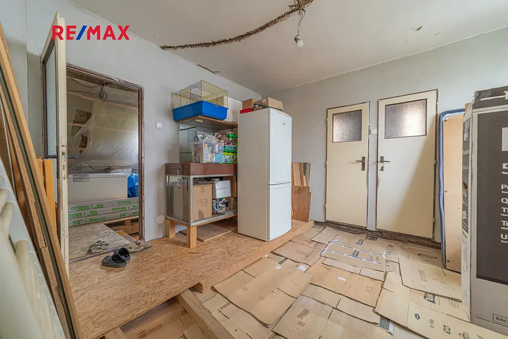 Ve druhém patře je započatá rekonstrukce, která nabízí možnost vybudování samostatné bytové jednotky s dispozicí pokojů 2+1 nebo 3kk.