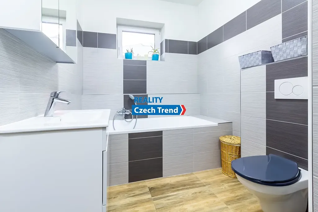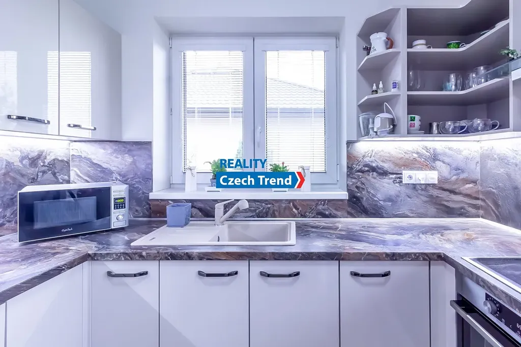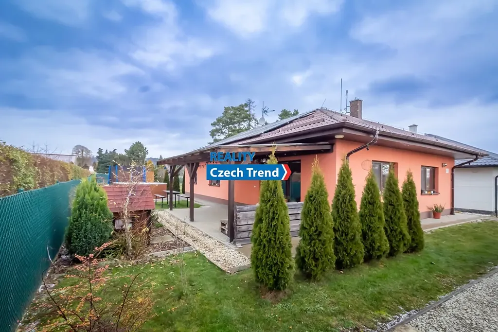 Kromě promyšlené dispozice se můžete těšit na celou řadu moderních prvků. Vytápění a ohřev vody zajišťuje tepelné čerpadlo (výkon 8kW, zn. Viessmann) v kombinaci s teplovodním podlahovým topením, což spolu s krbovými kamny zn. Romotop zaručuje nízké provozní náklady. Dalším upgradem úspory nákladů je fotovoltaika s výkonem 6,3 kWp, baterií 10kW zn. Growatt a 2x Wallbox. Kvalitní německá trojskla, zateplené základy, v podlaze polystyren, termoizolační ytong 45 cm, střecha zateplena 27 cm difúzní pěnou. Dalším nadstandardním prvkem je zahradní domek na pozemku v zadní části domu, o půdorysu 5 x 3 m, s ocelovou konstrukcí, zateplenou střechou a betonovou podlahou. Dům kolaudovaný před 8 lety je kompletně hotový a připravený k nastěhování.