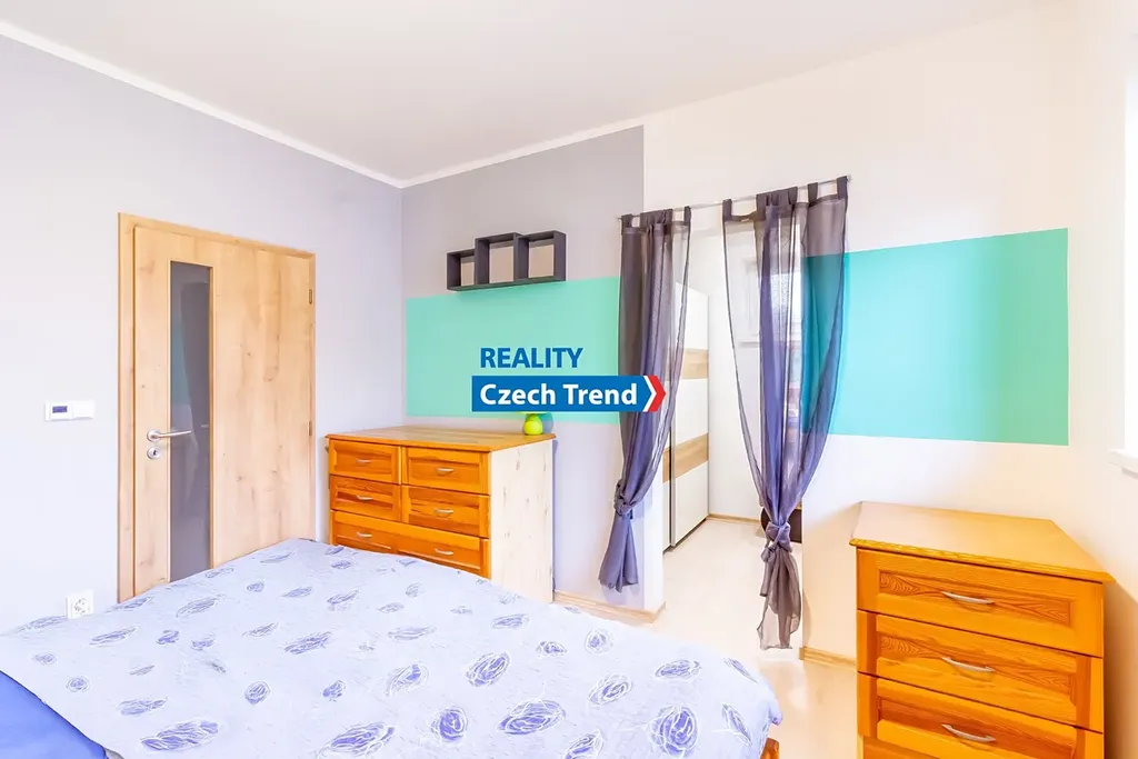 Nabízíme Vám k prodeji novostavbu bungalovu o dispozici 4+kk s podlahovou plochou 115 m2, s terasou a místem na parkování pro dva automobily. V domě se nachází prostorný obývací pokoj s kuchyňským koutem a vstupem na terasu a do zahrady, dětský pokoj, pokoj pro hosty možný využít jako další dětský pokoj nebo pracovnu, ložnice s šatnou, koupelna s vanou i sprchovým koutem. Ve vstupní chodbě je samostatná toaleta a technická místnost. Další technická místnost se nachází z druhé strany domu, do které je vstup ze zahrady. Pohodlné bydlení dále zajišťuje klimatizace zn. LG. Velkým plusem je možnost využití skladování věcí v prostorné půdě, na kterou je vstup po výklopném žebříku z chodby.