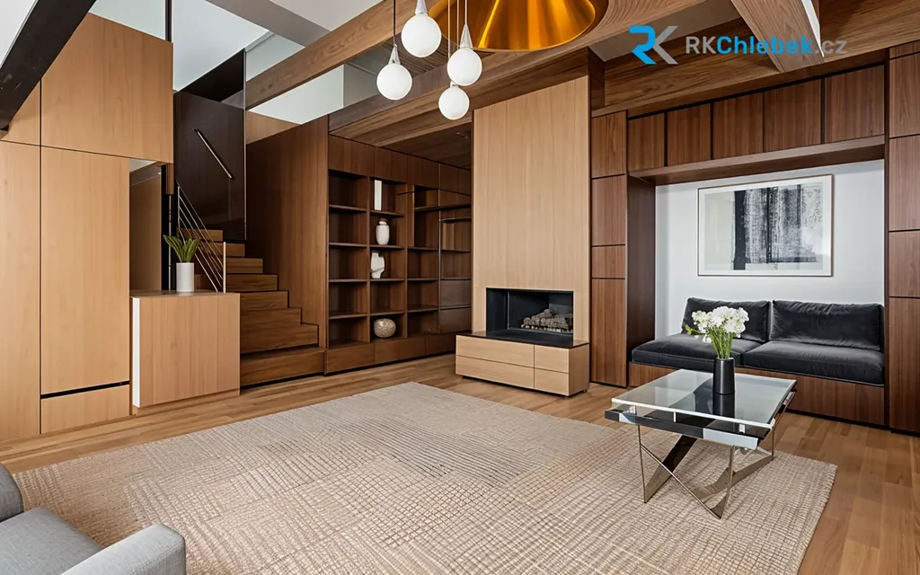 Mezipatro: prostorný obývací pokoj a kuchyně se spíží, ideální pro každodenní rodinné fungování. Zde je také přístup na střešní prostory garáže, které lze přestavět na krásnou prostornou terasu s výhledem na zeleň.