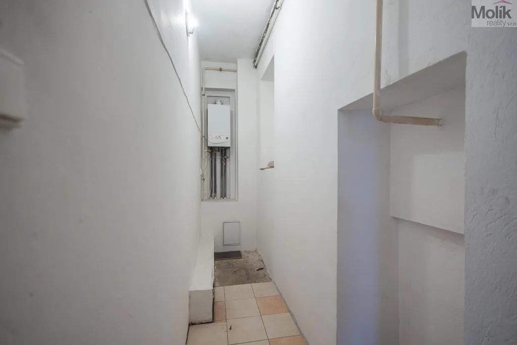 Dispozici tvoří dva velké pokoje, prostorná kuchyň, chodba, sklad a koupelna s WC.