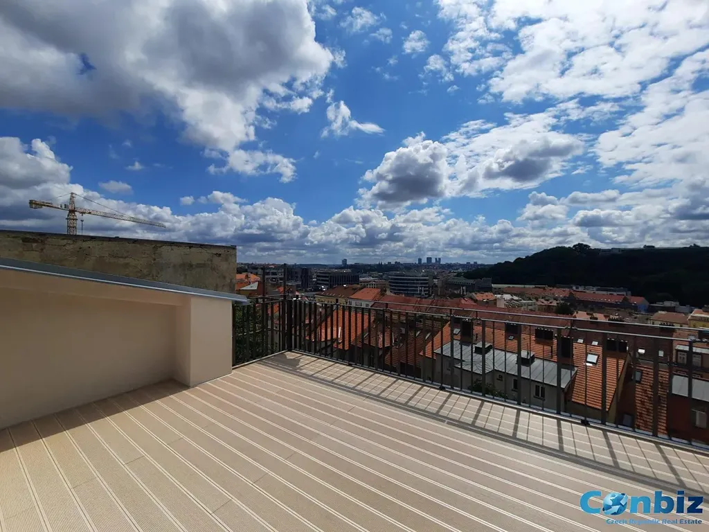 Moderně zařízený byt o velikosti 2kk, 62 m2 a terasou o velikosti 31m2 s nádherným výhledem na Prahu s možností krásného posezení v soukromí. Byt sousedí pouze s jedním bytem vedle. V novostavbě Rezidence Holečkova 53, Praha 5. Plně vybavený byt moderním nábytkem, 3x gauč, jídelní stůl, židle, TV, pokoj s prostornou postelí a pracovní částí. Kuchyň se spotřebiči, myčkou a lednicí. Fotky odpovídají realitě. Koupelna se sprchových koutem a toaletou. Do bytu se vchází po schodišti, pod kterým je připojena pračka se sušičkou. Nachází se v 6. a 7. patře objektu s výtahem. Terasové okno je vybaveno žaluzií na elektrický pohon.