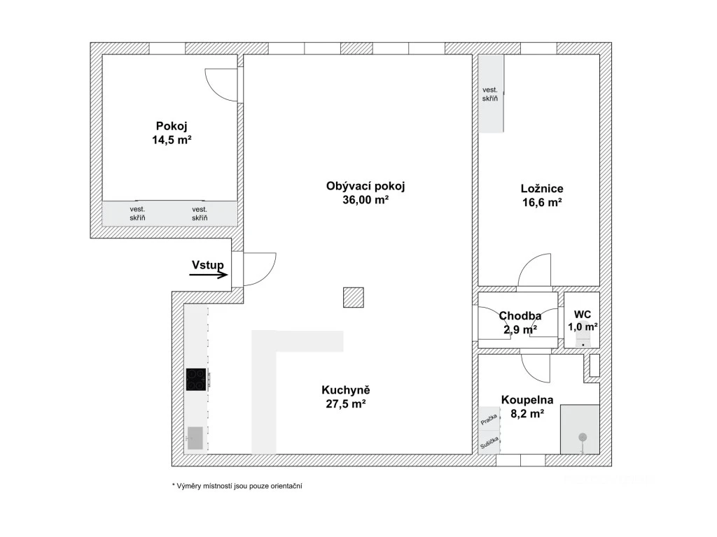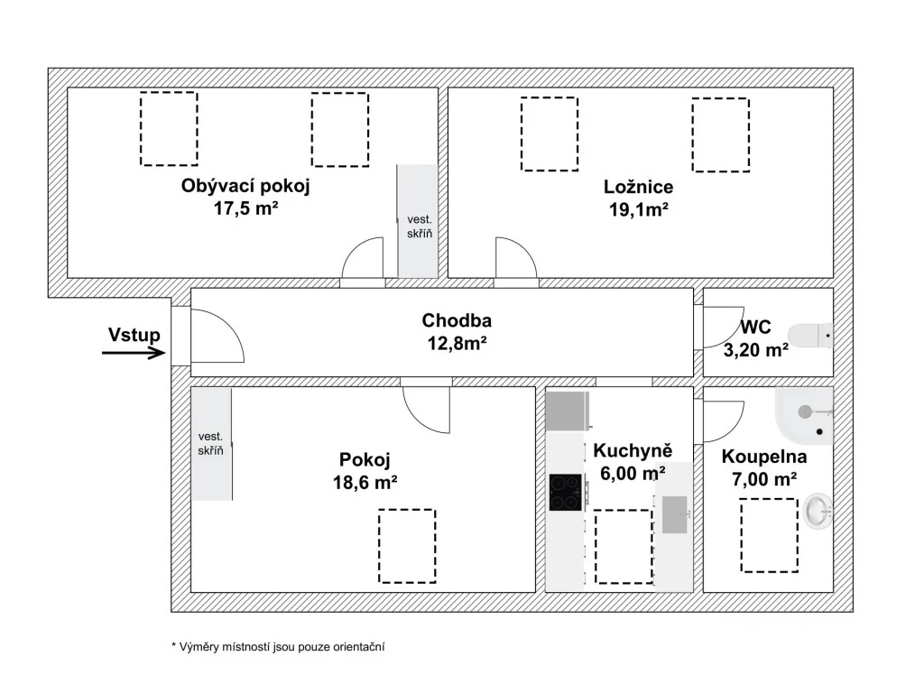 - světlý, prostorný byt s praktickou dispozicí