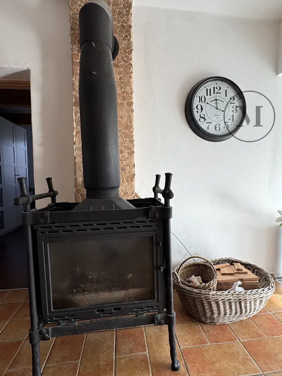 V hale jsou krbová kamna s tepelným výměníkem, který efektivně vytápí velkou část domu a dodává domovu příjemnou atmosféru.