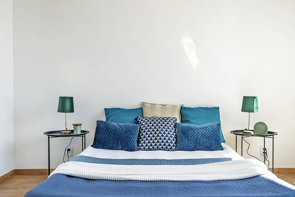 3 neprůchozí ložnice (13–14 m²), velkorysý obývací pokoj s kuchyňským koutem (34 m²), koupelna s vanou a WC, samostatná toaleta, komora s místem pro pračku/sušičku