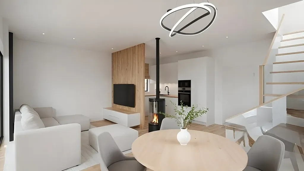 Energeticky úsporný dům (PENB „B“) je vybaven tepelným čerpadlem s podlahovým vytápěním, rekuperací vzduchu, přípravou na krb a přípravou pro solární panely. Dům je o velikosti 5+1 s přístřeškem pro parkování 2 aut.