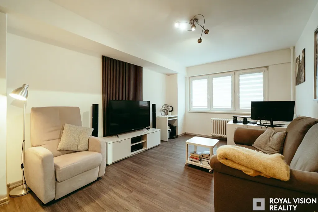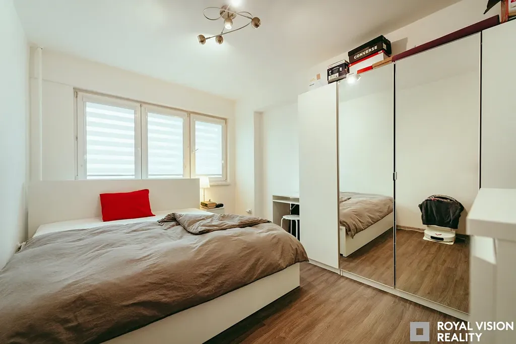 ROYAL VISION reality nabízí ke koupi byt v osobním vlastnictví o dispozici 2+1 s balkonem a sklepní kójí. Nachází se v 9. podlaží panelového domu o 13 nadzemních podlažích se dvěma výtahy – osobním a nákladním. Byt prošel nedávnou rekonstrukcí – nové podlahy, zděná koupelna a WC a v roce 2025 byla pořízena nová kuchyňská linka. Díky orientaci na severovýchod je interiér krásně světlý po celé dopoledne a v létě si zároveň udržuje příjemnou teplotu.