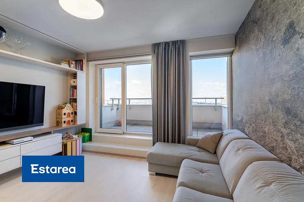 Byt najdete v nejvyšším podlaží polyfunkčního domu Atrium Nový Lískovec.