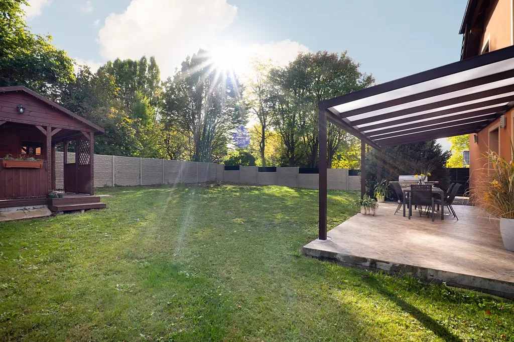 Zahrada o velikosti 626 m² je ideálně orientovaná, připravena na venkovní aktivity, relax i zahradničení. Díky rovinatému pozemku je dokonale využitelná a poskytuje příjemný klid, soukromí a využití pro celou rodinu.