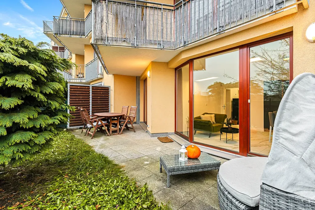 Samotná bytová jednotka se nachází v 1. nadzemním podlaží bytového domu s terasou. Byt má užitnou plochu 53,4 m2 a terasa 19,3 m2.