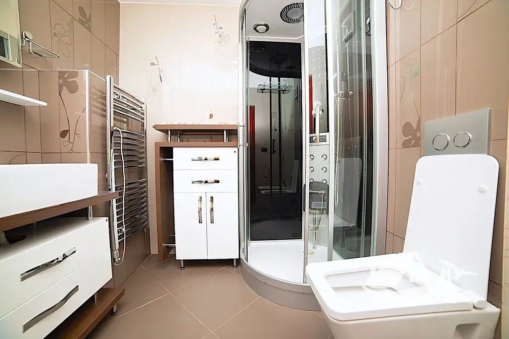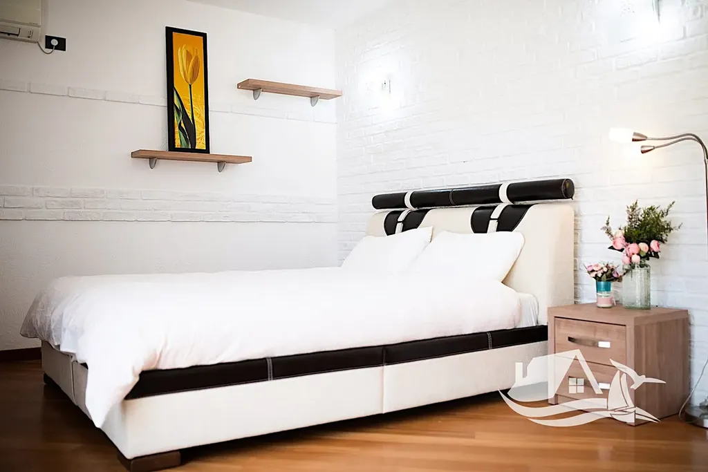 Apartmán o celkové ploše 142 m² nabízí velkorysé a funkční uspořádání. K dispozici jsou tři prostorné ložnice, jedna moderní koupelna, praktická šatna a velká terasa o rozloze 39 m². Z každého okna i terasy si můžete užívat nádherné výhledy na ikonické lokality, jako je ostrov Sveti Stefan, ostrov Sv. Nikola (známý také jako Školský ostrov), balkánské hory a pobřežní promenádu. Apartmán je plně vybaven moderními spotřebiči a kompletně zařízen, což umožňuje okamžité nastěhování.