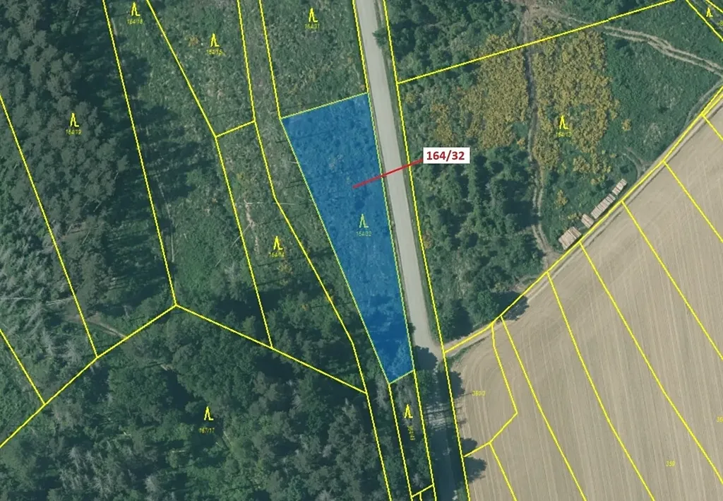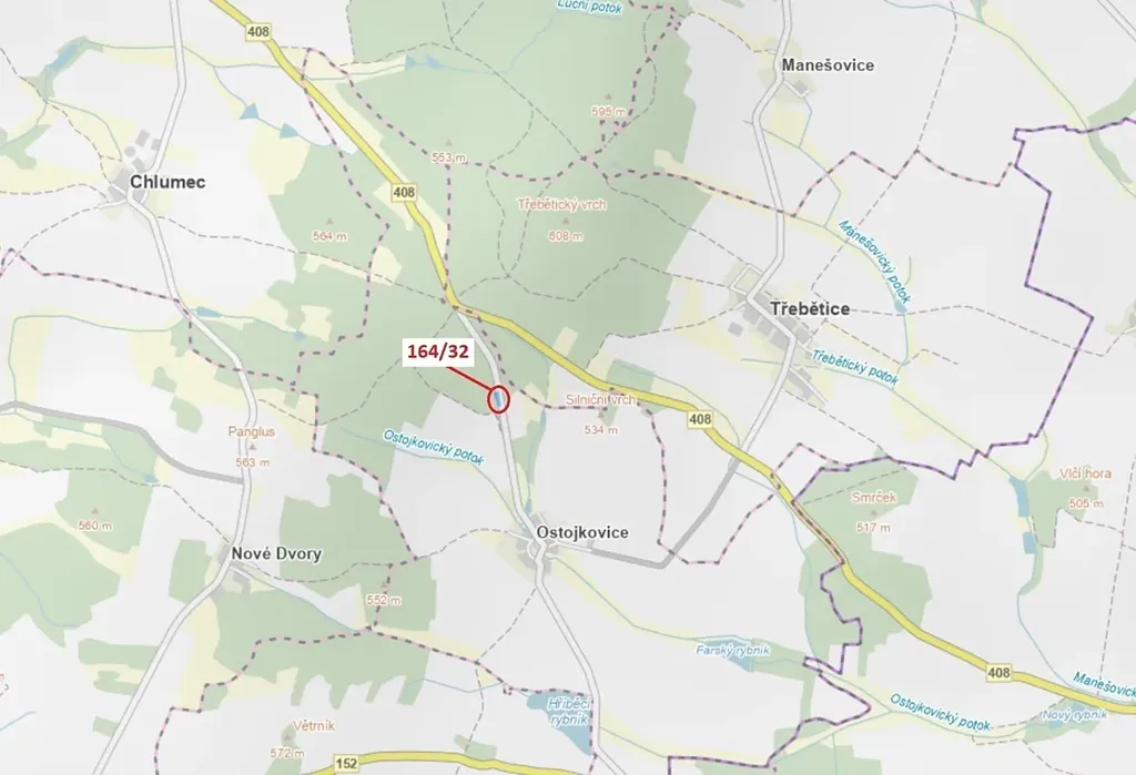 Lesní pozemek o výměře 1817 m2, parcelní číslo 164/32, podíl 1/1, katastrální území Ostojkovice, obec Budíškovice, obec s rozšířenou působností Dačice, okres Jindřichův Hradec, Jihočeský kraj.