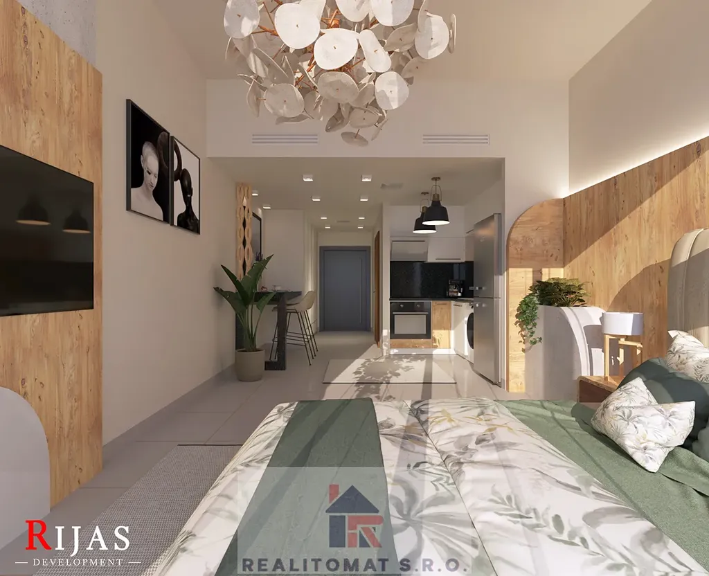 Některé projekty mají splátkové kalendáře např. 20% rezervace, 50% po dokončení projektu, následně 1% po dobu 30 měsíců, kdy již pronajímáte krátkodobě Váš byt, takže Vám stačí pouze 2 mil. Kč na investici....