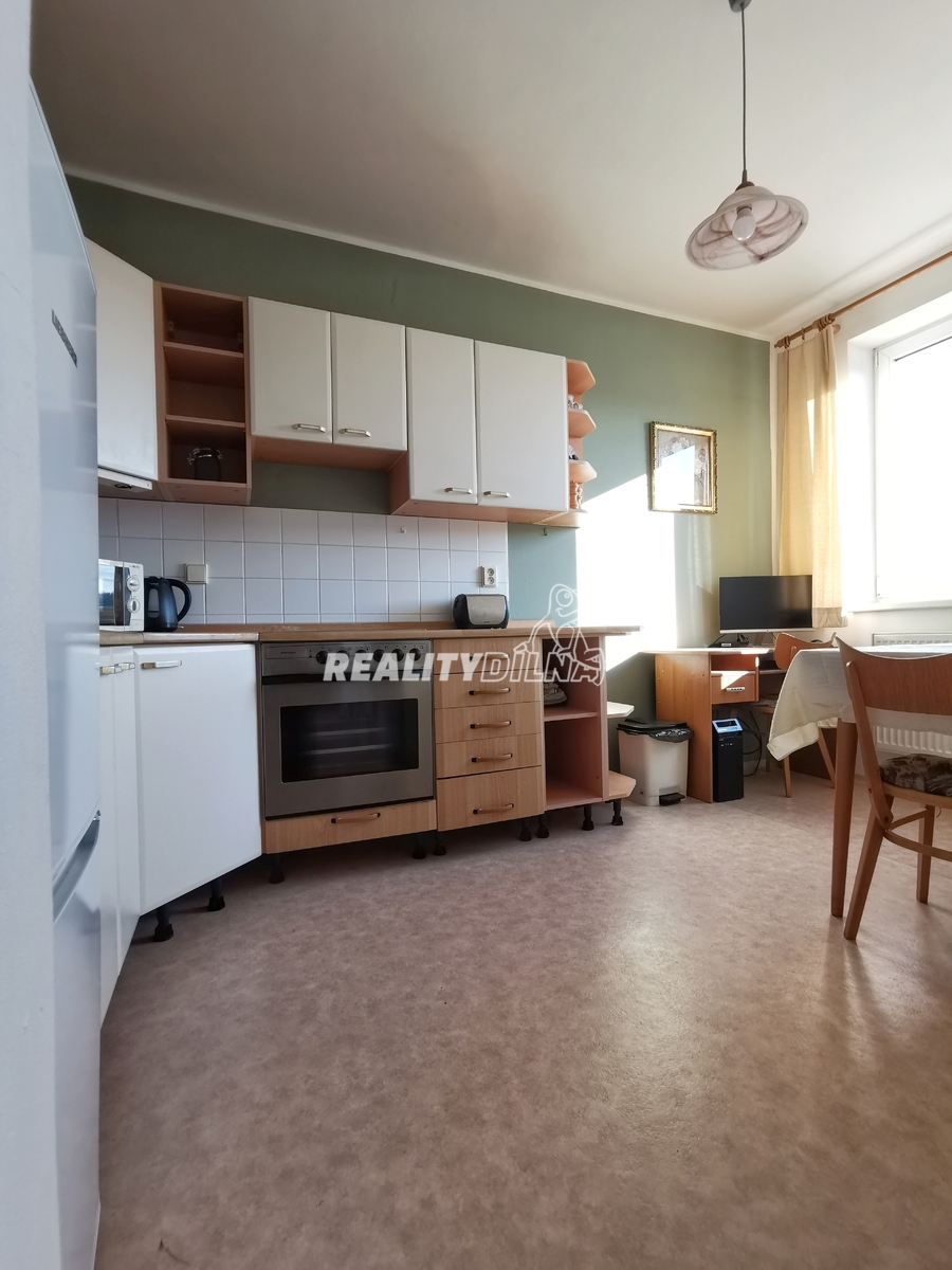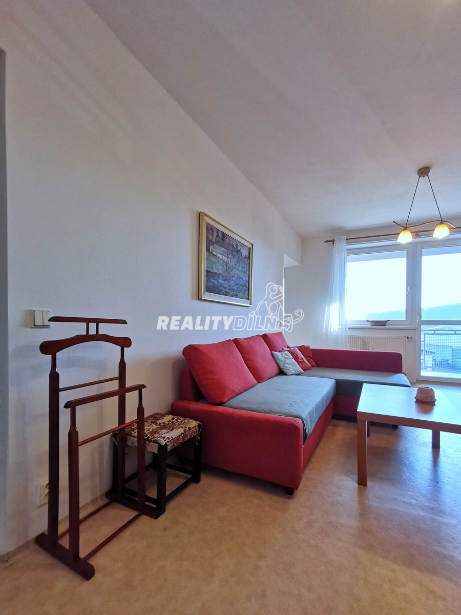 Nabízím vám částečně zařízený byt 1+1 s lodžií (39m + 6m) s okny na jihovýchod ve 4. patře domu z roku 2004.