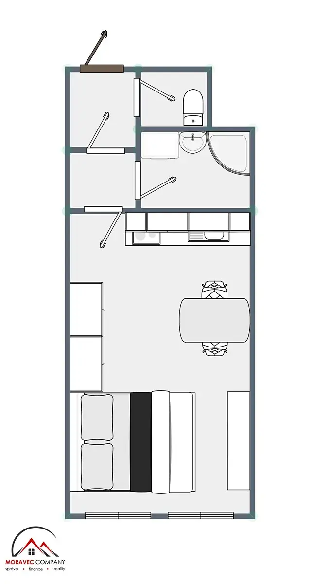 Byt je ideální pro jednotlivce i páry, hledající klidné bydlení s dobrým spojením do centra města. V okolí se nachází veškerá občanská vybavenost – obchody, restaurace, zdravotní střediska i možnosti sportovního vyžití.