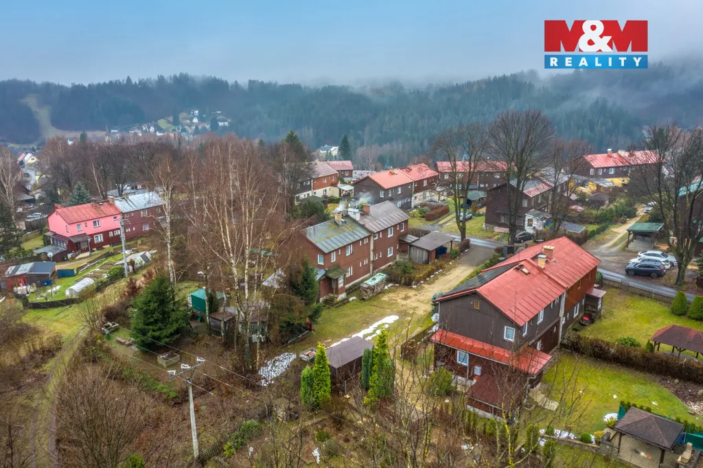 Nabízíme k prodeji rodinný dům se dvěma byty a pozemky o celkové výměře 476 m2 v Desné v Jizerských horách. Nemovitost je tzv. finský domek a je součástí několika stejných staveb na krásném klidném místě s výhledem v místní části Desná I. Celý objekt je podsklepený, v přízemí se nachází bytová jednotka 2+1 s pracovnou a zimní zahradou. V 1. patře je téměř identický byt 2+1 s balkonem. Obě bytové jednotky mají samostatný vstup. Na udržované zahradě stojí přístřešek pro automobil a sklad na nářadí. Dům je vhodný k trvalému bydlení i rekreaci díky mnoha ski areálům v těsné blízkosti, může ale sloužit i jako investice k pronajímání.