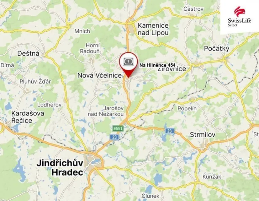 Vzdálenost Jindřichova Hradce je pouhých 14 km, Kamenice nad Lipou 10 km.