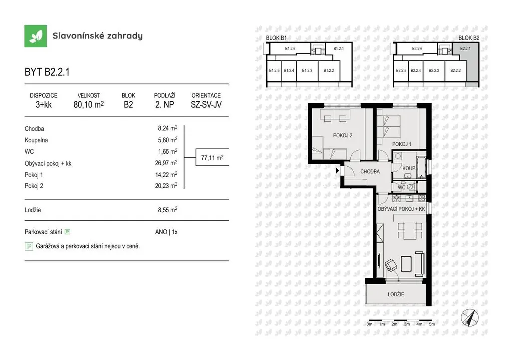 Nabízíme prostorný byt s označením B2.2.1 o dispozici 3+kk, podlahové ploše 80,1 m2 v 2. NP, s balkónem 9,5 m2. ideální pro rodiny s dětmi, páry nebo jako investiční bydlení.