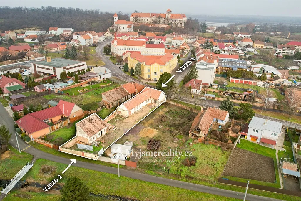 Dům se nachází na okraji náměstí, tedy v samotném centru obce, kde máte vše důležité příjemně na dosah. Tato poloha je mimořádně atraktivní – na náměstí se pravidelně konají kulturní, společenské i komunitní akce, díky kterým zde panuje živá, přátelská atmosféra během celého roku. Zároveň si lokalita zachovává typický klid menší vinařské obce. K nemovitosti vedou příjezdové cesty z obou stran, což zajišťuje pohodlný a bezproblémový přístup.
