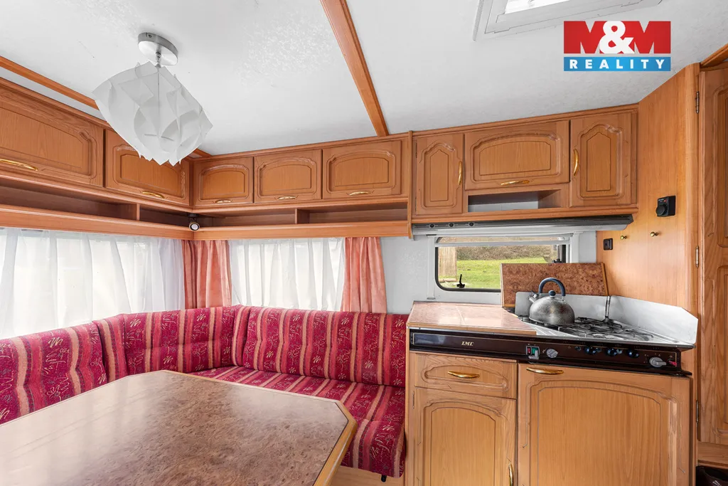 Pokud nejste milovníky zimního počasí, jistě vás zahřeje naše vyloženě letní nabídka zahrady s bonusem zaběhnutého podnikání s krásně a funkčně zařízenými karavany i s předstany přímo u Labské cyklostezky. Karavany se skládají z oddělené ložnice, samostatné kuchyňky s rozkládacím sezením a koupelny k běžné hygieně. Nabídka je vhodná nejen pro vášnivé potápěče, ale i rybáře, zahrádkáře, kutily. Místo nabízí mnoho netušených možností. Navíc každý karavan má i své molo s vlastní loďkou. Kdykoliv budete potřebovat plout proti proudu, nic vám nebrání. Jen si to představte, západ slunce v odlesku řeky nebo naopak ranní probuzení u mola s lahodným šálkem kávy či čaje. Nebo večery s přáteli u grilu. Na tomto místě v Křešicích u Litoměřic není nic nemožné, nijak vzdálené, ať po proudu řeky, silnici, či kolejích, A třešinkou na dortu je pak luxusní mobilheim o velikosti 11x 3,7 m tedy cca. 40 m2, s venkovním sezením 55m2, připojený na užitkovou vodu a bio odpad. Přijďte a vnímejte všemi smysly.
