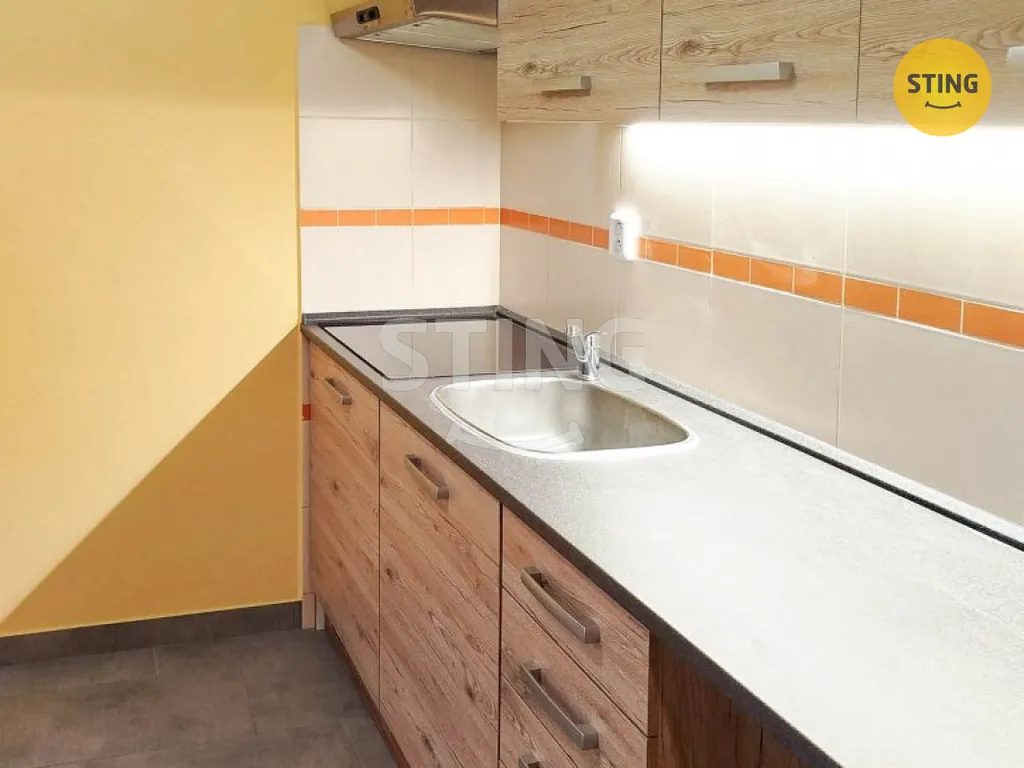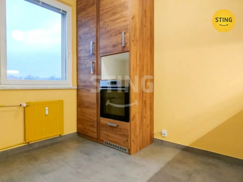 Byt má praktickou dispozici – z obývacího pokoje je vstup do kuchyně i ložnice. V předsíni se nachází vestavěná šatní skříň. Koupelna s WC je částečně zrekonstruovaná, v obkladech, s novou vanou. Kuchyň je vybavena kuchyňskou linkou s indukční varnou deskou, digestoří a špajzem.