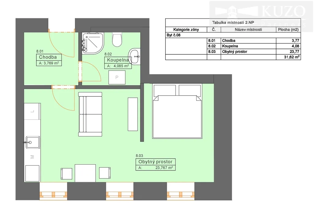 Byt č. 8 – výměra 37 m² – cena 3.700.000 Kč