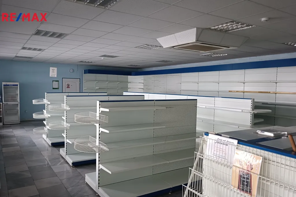 Obchod je plně vybavený regály, kasou a pultem centrální ochrany, alarmem, zázemím pro personál a skladem.