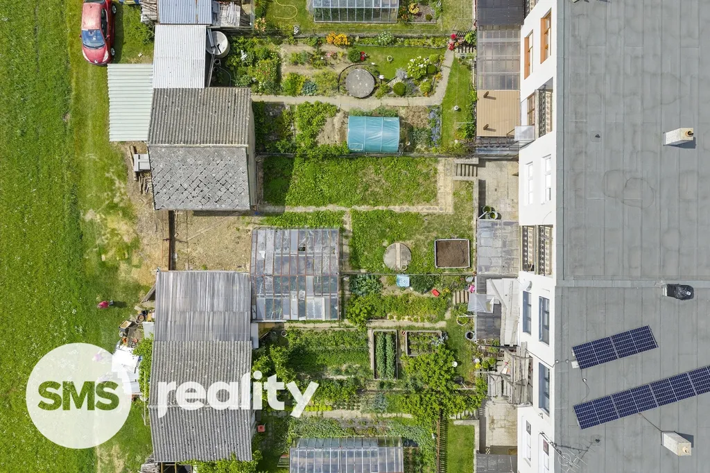 Zahrada: zpevněná dlážděná terasa, domek vhodný jako dílna či sklad zahradního nářadí, skleník, zadní přístup z vedlejší cesty