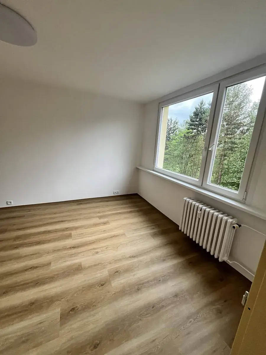 Pronájem bytu 2+kk o výměře 36m2 v 3. patře šestipatrového panelového domu. Dům po průběžných renovacích - má nová plastová okna , fasádu, zateplení, vchodové dveře i výtah. Byt je nyní 1,5 roku po kompletní rekonstrukci - koupelna, kuchyň, nové podlahy, nové dveře. V kuchyni je krásná kuchyňská linka s elektrickým sporákem, dřezem, baterií a zabudovanou digestoří. Koupelna je zrekonstruovaná a je moc hezká. Má prostorný sprchový kout, umyvadlo se skříňkou, místo na pračku a WC. Obě místnosti jsou plnohodnotné a jejich výměra je cca 15m2. V obytné kuchyni je prostor na obývací pokoj. Vedlejší pokoj slouží pak jako ložnice. V celém bytě jsou svítidla. Byt je velmi slunný a teplý. Kolem domu je spousta zeleně, lesopark, dětské hřiště, parkování u domu, nedaleko obchody, lékař, školka i škola. K bytu náleží sklepní koje. K užívání je i lodžie v mezipatře. Byt je volný ihned. Byt je nekuřácký a je vhodný pro 2 osoby, bez domácích mazlíčků. Hledáme dlouhodobého nájemníka