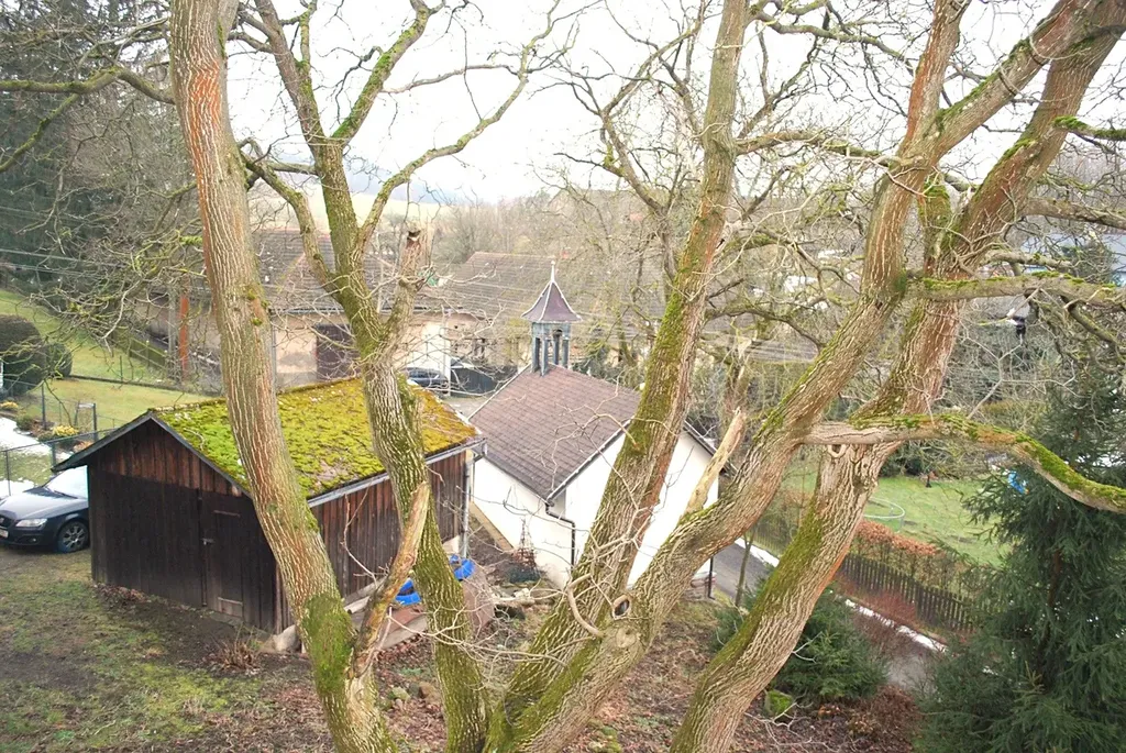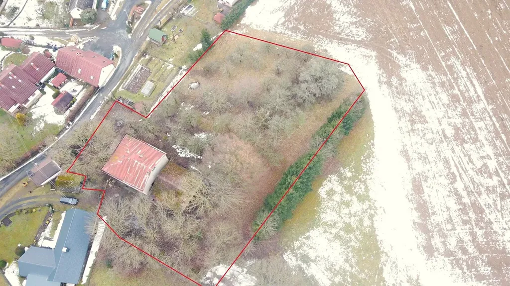 K domu náleží rozsáhlý pozemek o celkové ploše 3040 m2, jenž tvoří dvůr, velkou předzahrádku před domem, zahradu a ovocný sad, kde jsou vzrostlé ovocné stromy. Dům spolu se sadem na vyvýšeném místě nad vesnicí společně tvoří unikátní místo s krásným výhledem a poskytuje klid a soukromí.