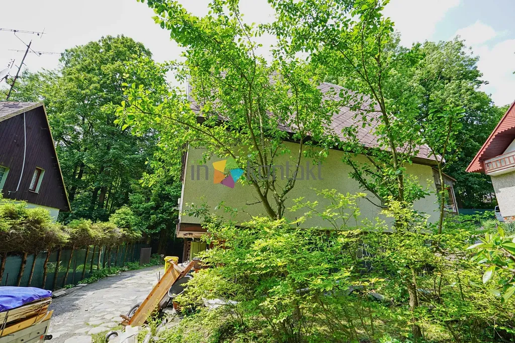 Samostatně stojící chata (kolaudace 1983, rekonstrukce 2022 – kuchyně, koupelna, podlahy) nabízí vše potřebné pro pohodlný pobyt během celého roku. V 1. NP se nachází vstupní zádveří, chodba, kompletně vybavená kuchyně, koupelna se sprchovým koutem a WC a prostorný obývací pokoj se stropními trámy a krbem; z něj se vstupuje na krytý balkon. V podkroví najdete chodbu, tři neprůchozí ložnice a další balkon orientovaný do zahrady.