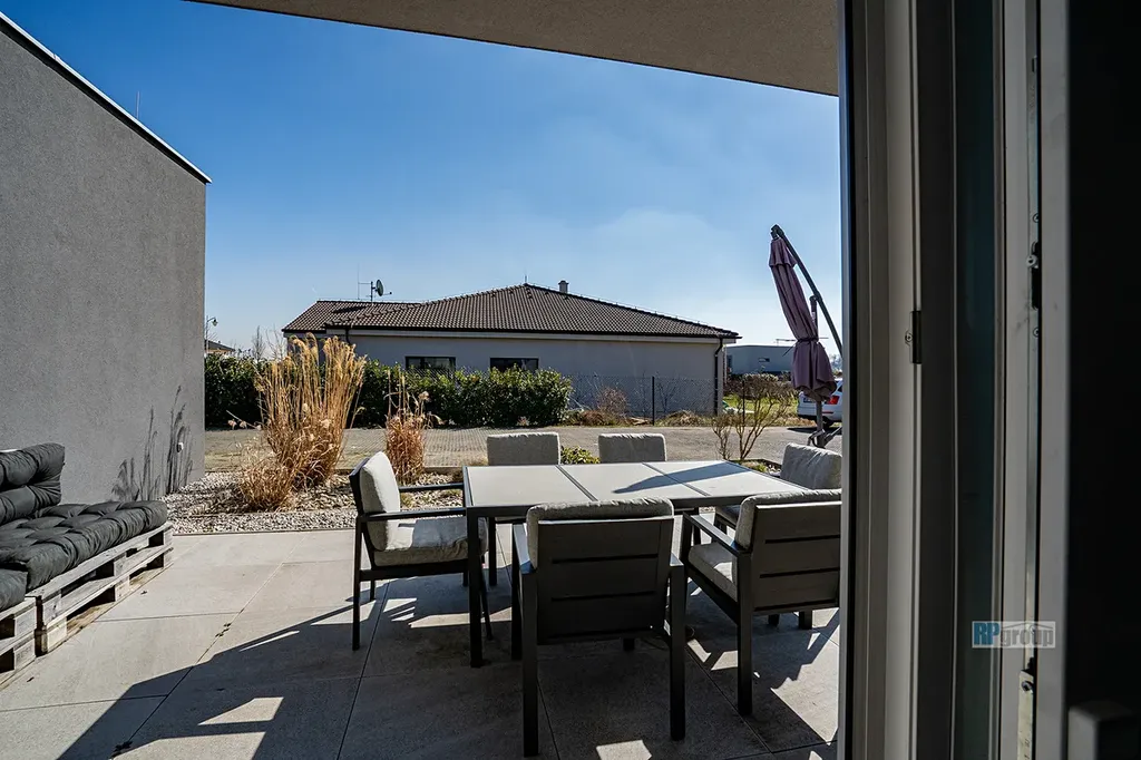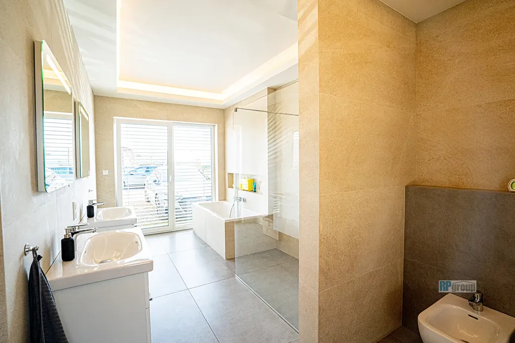 Dům je úsporný v energetické třídě B a na střeše má 22 FVE panelů, které využívají sluneční energii. Přebytky jdou do baterií v technické místnosti. Tepelné čerpadlo pomáhá při vytápění nebo naopak chlazení. Toto jistě chcete, provoz Vaší nemovitosti Vás vyjde velmi příjemně. A v průběhu dne, dobijete elektromobil.