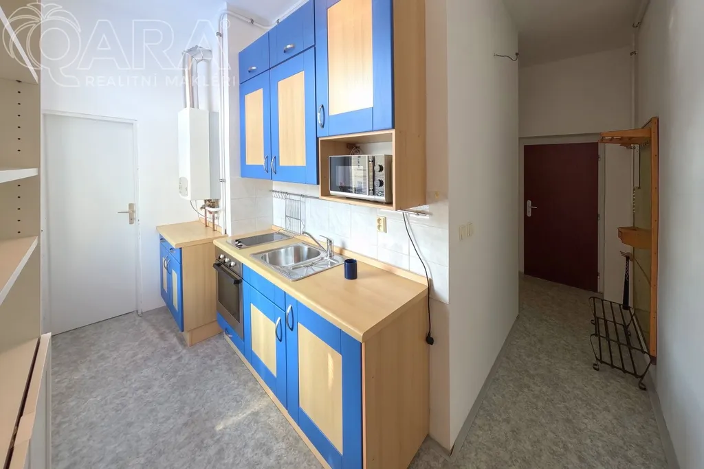 Zařízený byt o velikosti 37 m2 se nachází ve druhém podlaží bytového domu. Obývací pokoj a kuchyně jsou orientovány na jih. Kuchyňská linka je vybavena vestavěnou lednicí, indukční deskou na vaření a mikrovlnnou troubou. V pokoji je velká skříň, dvoulůžko, sedací souprava, jídelní a pracovní stůl. K dispozici je také vstupní chodba, koupelna s vanou a pračkou, a samostatné WC.