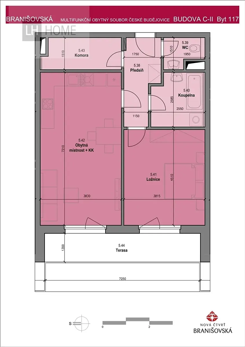 Nabízíme k prodeji moderní a nadstandardně prostorný byt 2+kk o celkové ploše 67,50 m², který je doplněn o balkon 9,90 m². Byt se nachází v 5. podlaží nového rezidenčního projektu Nová čtvrť Branišovská a poskytuje komfortní a funkční bydlení vhodné pro jednotlivce, pár nebo jako investici.
