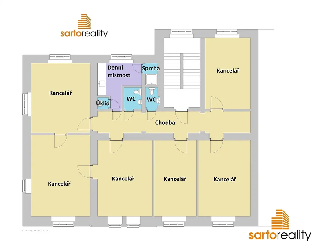 Prostory se skládají z 6 oddělených kancelářských prostor + potřebného sociálního zázemí. K dispozici od ledna 2026.