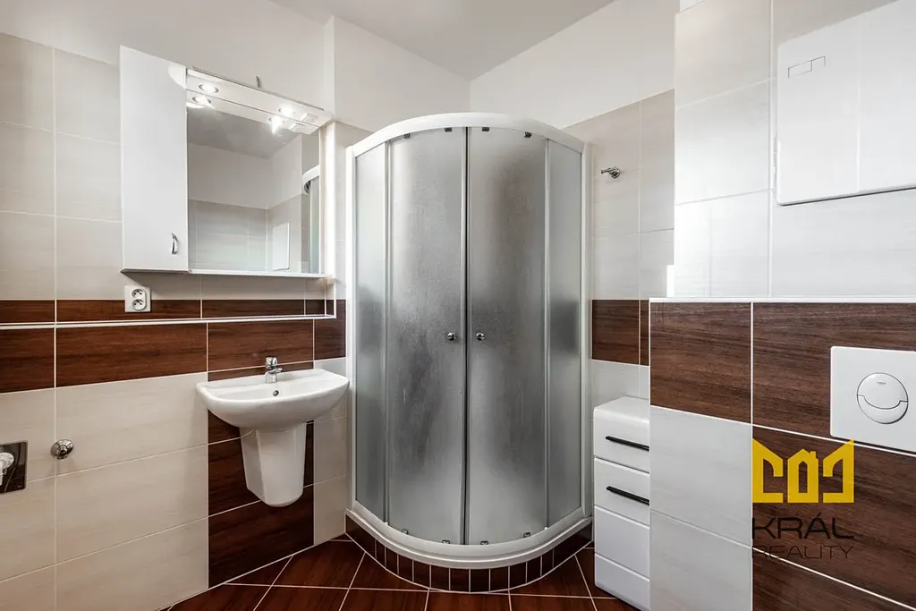 Z obývacího pokoje je vstup na velkou terasu cca 25m2. Možnost venkovního grilování na el. grilu. Kauce ve výši jednoho měsíčního nájmu včetně poplatků.