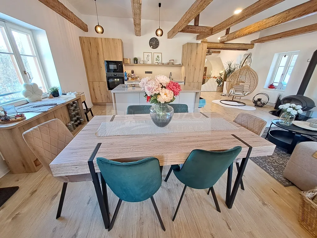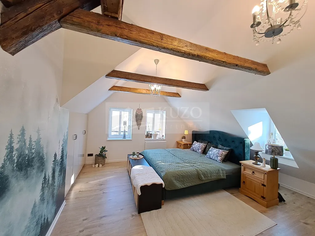 Byt, stejně tak jako celá vila o 6-ti bytových jednotkách, je citlivě zrekonstruován s důrazem na kvalitu a maximální pohodlí majitelů. Vestavěná kuchyně je od interiérové špičky na trhu, spol. Hanák, s pracovní deskou z drceného kamene, denním barem, výsuvnou digestoří, nadrozměrnou lednicí a dalšími prvky dotvářejí pocit luxusu a péče. Koupelna s vanou umožňuje relaxaci po náročném pracovním nebo sportovním dni, stejně jako posezení u litinového designového krbu v obývacím pokoji. Sedací okno zase vybízí k zasněným toulkám pohledy po krajině z tepla a pohodlí domova. Klidný nádech ložnice dovoluje majitelům plně se uvolnit a načerpat síly na další dny a výzvy. Pracovna/dětský pokoj je vybaven na míru zhotovenými vestavěnými skříněmi, také od spol. Hanák. Krásné původní masivní trámy a větší a menší okénka dodávají tomuto unikátnímu bytu zemitý a tradiční charakter.