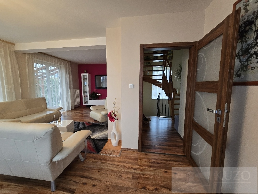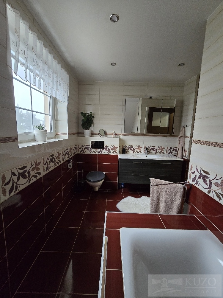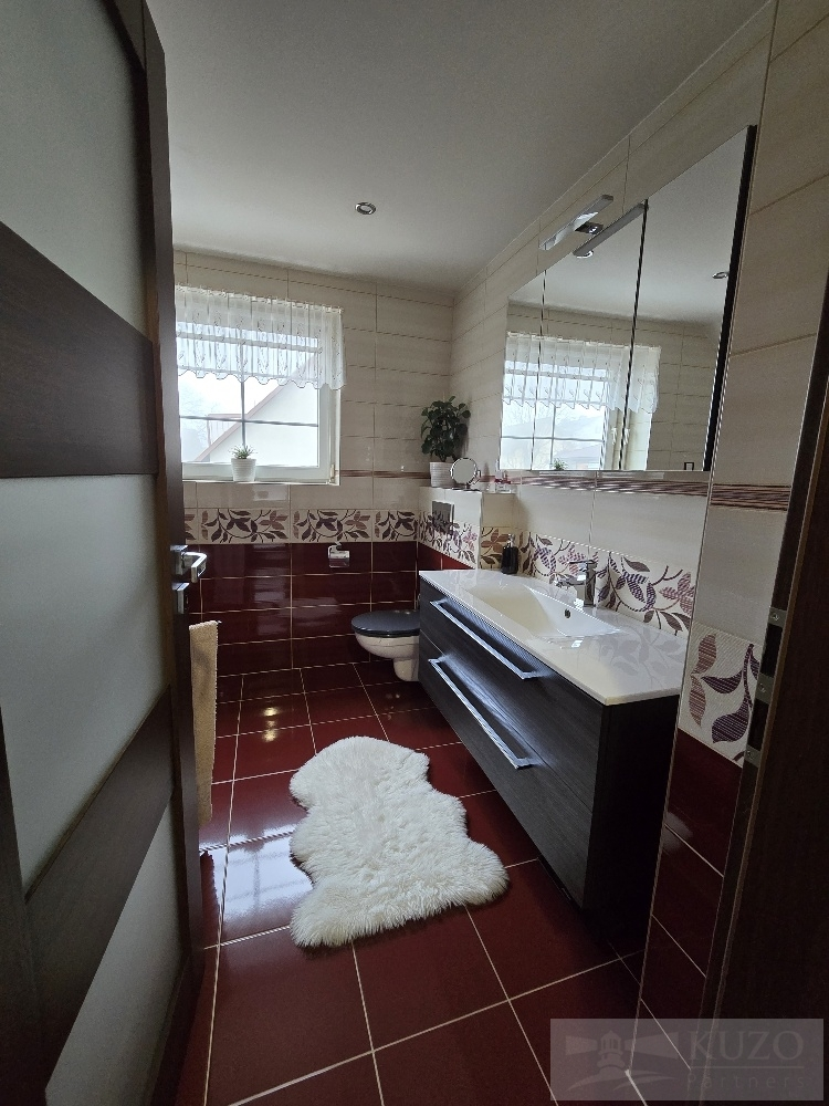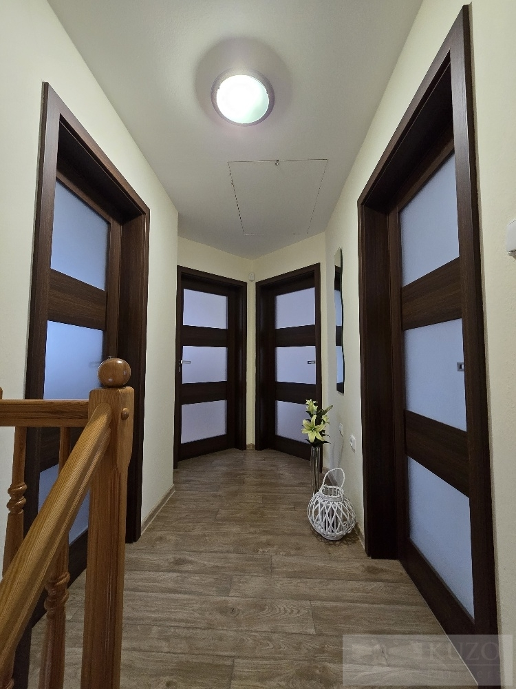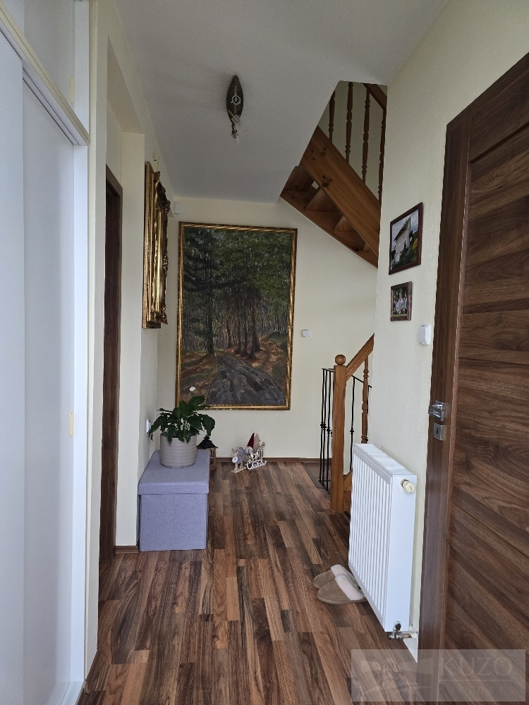 Dům disponuje čtyřmi pokoji a celkovou užitou plochou 150 m², přičemž zastavěná plocha činí 73 m². Pozemek, na němž se nemovitost nachází, má rozlohu 599 m² a je oplocen, což zajišťuje soukromí a bezpečnost. Na pozemku najdete vedlejší stavby, jako je altán, terasa, vrtaná studna a čistírna odpadních vod (ČOV). Interiér domu je velmi dobře vybaven a zmodernizován. V posledních letech (2010 – 2025) proběhla výměna kuchyňské linky a interiérových dveří, stejně jako obou koupelen a podlahových krytin, které byly nahrazeny dřevěnou plovoucí podlahou. Dům je nízkoenergetický s vytápěním zajištěným tepelným čerpadlem vzduch-voda, přičemž ohřev vody je rovněž zajišťován tímto systémem. Topení je řešeno podlahovým vytápěním, které poskytuje maximální komfort. V přízemí domu (I.PP) se nachází chodba se schodištěm, sklep, kotelna a garáž. První nadzemní podlaží (I.NP) zahrnuje zádveří, koupelnu s toaletou a prostorný obývací pokoj s jídelnou spojený s kuchyňským koutem, ze kterého je přístup na terasu. V podkroví se nachází chodba, ložnice a další pokoje, včetně koupelny s toaletou. Nemovitost je napojena na elektřinu (230 V) a využívá vlastní vrtanou studnu pro zásobování vodou. Přístup je zajištěn přes veřejnou zpevněnou asfaltovou komunikaci s chodníkem. Dům disponuje jednou garáží a dvěma parkovacími místy, což zajišťuje dostatek prostoru pro automobily. Díky své poloze v klidné části obce a blízkosti k základním službám a infrastruktuře je tato nemovitost ideální pro rodiny hledající příjemné a pohodlné bydlení. V případě zájmu o prohlídku nás neváhejte kontaktovat.