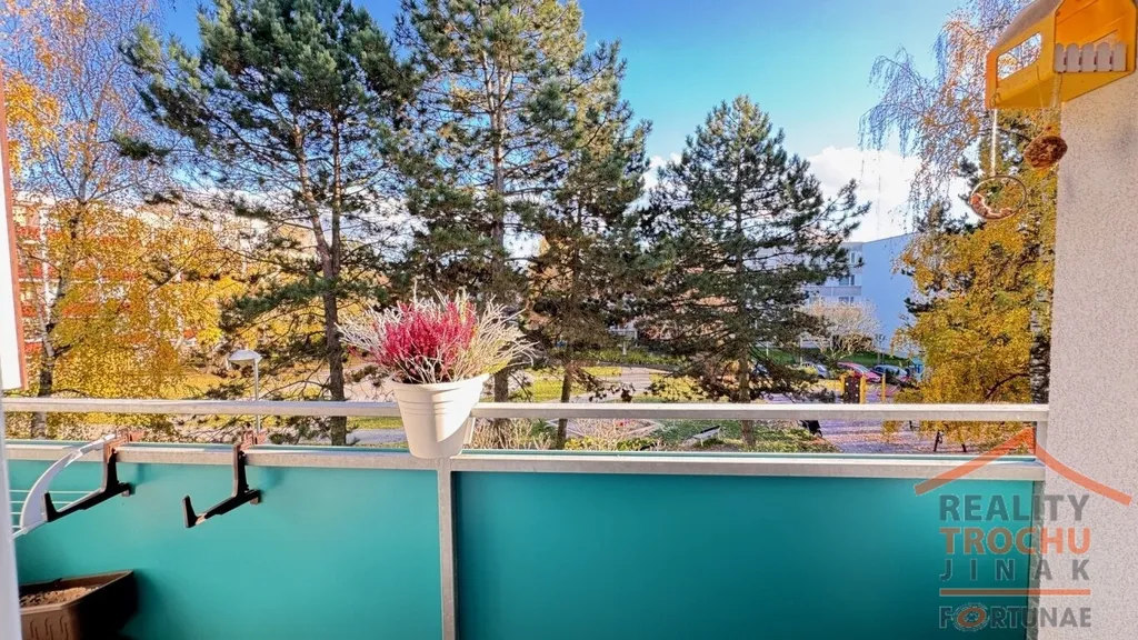 Dispozice: 1 obytná místnost se vstupem na lodžii (3,5 m2), kuchyňský kout s jídelnou, koupelna (vana), samostatné WC, chodba (vestavěné skříně), sklepní kóje. Topení: ÚT – dálkové.